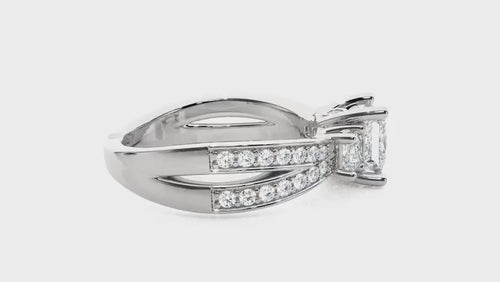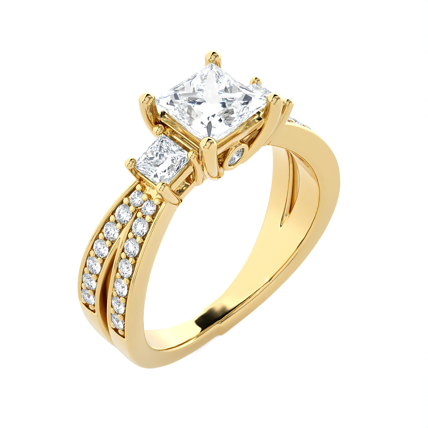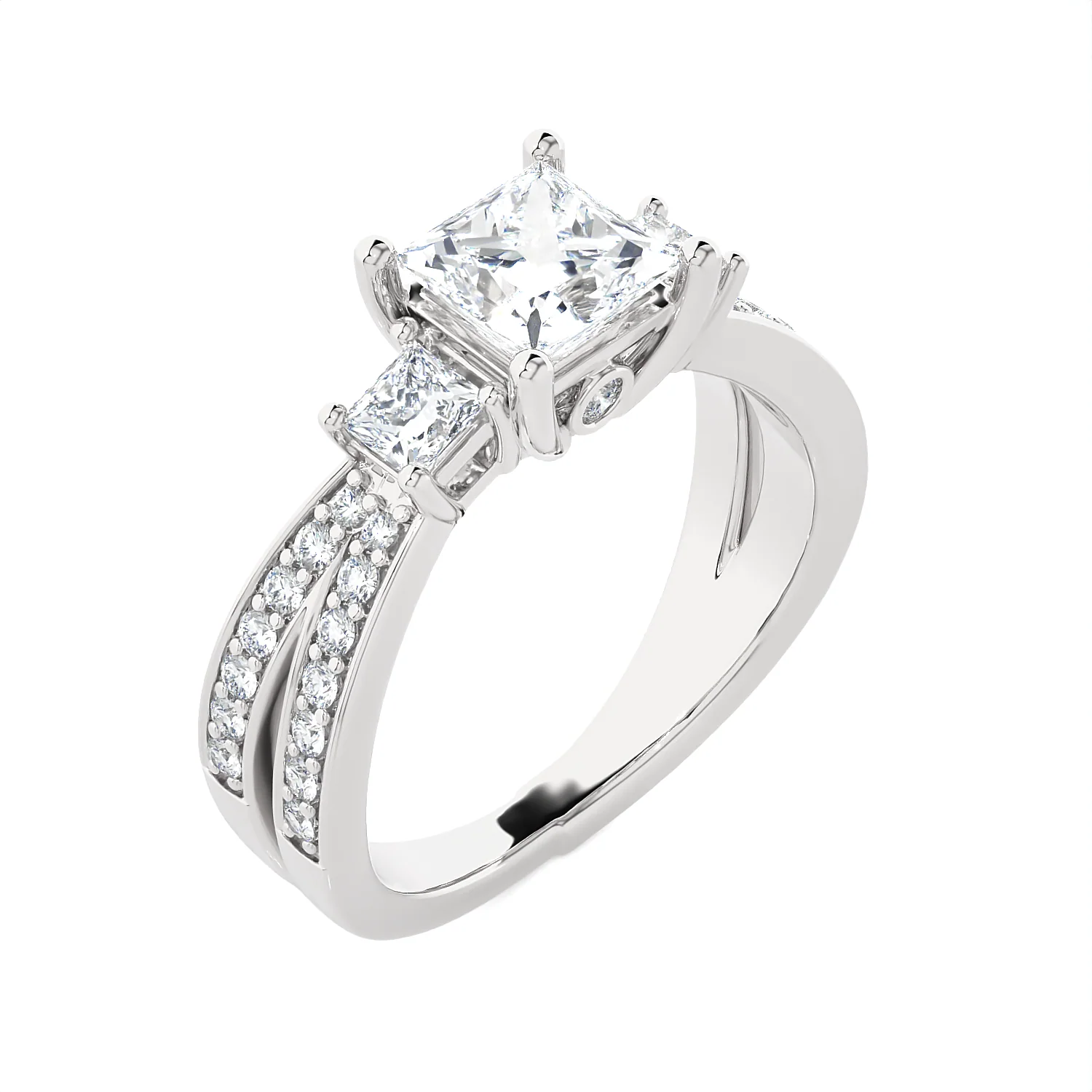 Elegant trilogy-ring med princessslipad mittsten och pavéband