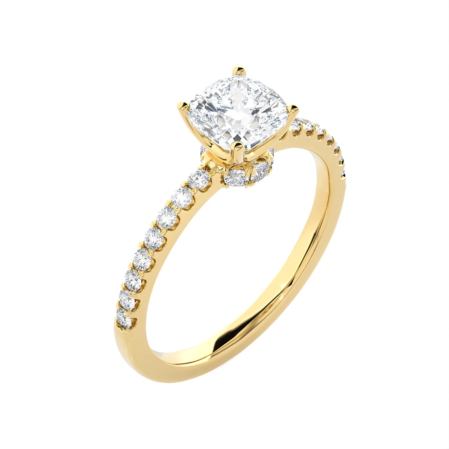 Cushion solitärring med mjukt skimmer och elegant pavéband