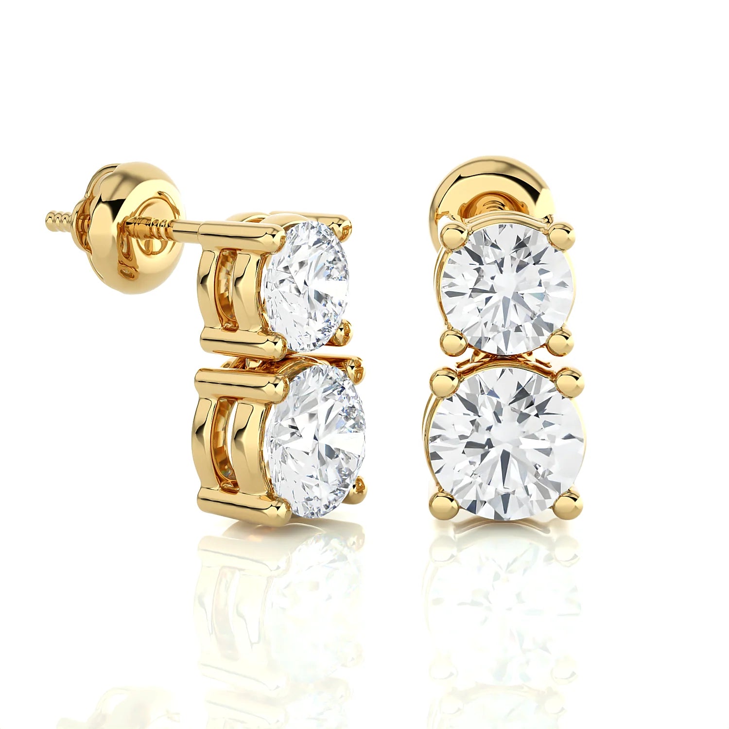 Nafisa är örhängena som kombinerar klassisk briljans med en modern och sofistikerad siluett. Varje örhänge bär två rundslipade diamanter i en vertikal linje, vilket skapar en subtil rörelse och ett vackert ljusspel när örhängena följer dina steg. De två stenarna är noggrant matchade för att ge ett harmoniskt, lyxigt uttryck — dubbelt med ljus, utan att någonsin kännas överdådiga.