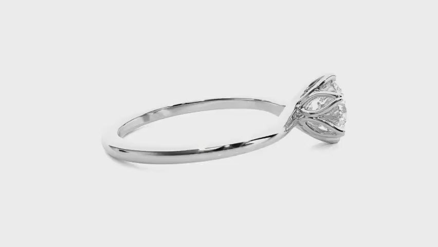 Design: Klassisk solitärring med mjukt format band och ren, elegant profil